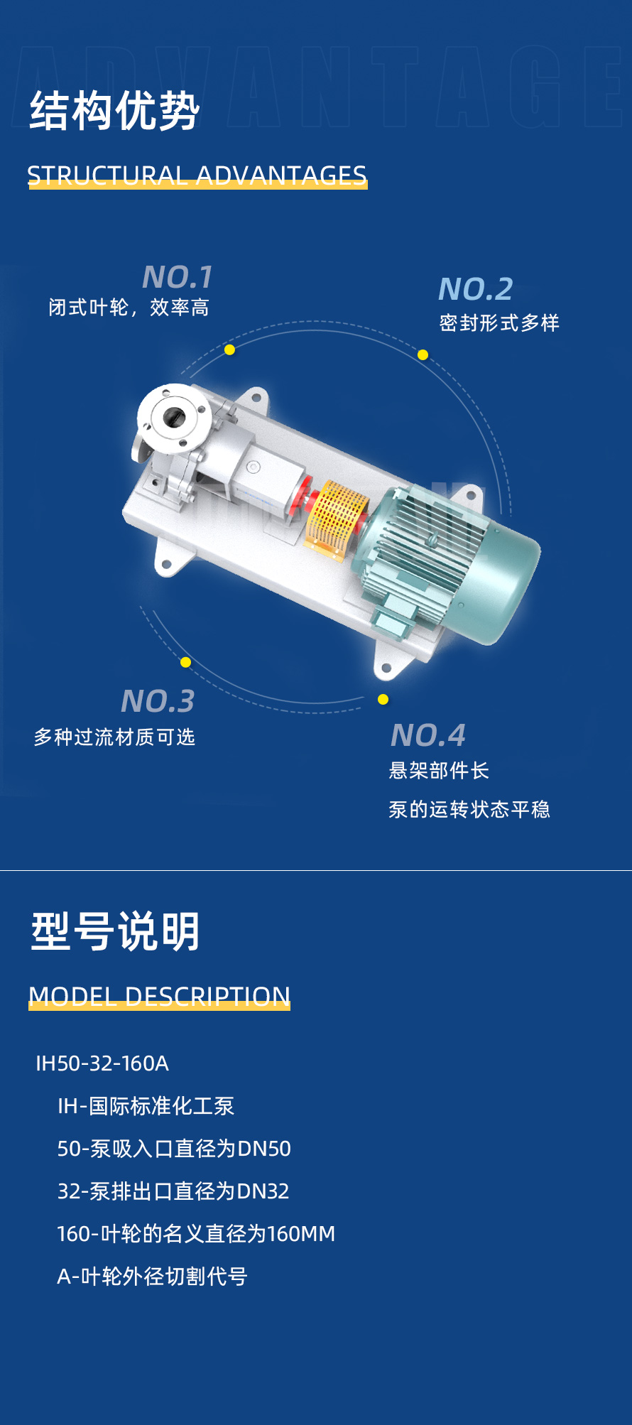 IH型單級(jí)單吸懸臂式化工離心泵是取代F型耐腐蝕離心泵的節(jié)能、換代產(chǎn)品,該產(chǎn)品廣泛用于化工、石油、冶金、造紙、食品、制藥、合成纖維等工業(yè)部門,用來輸送有腐蝕性、粘度類似于水的液體。