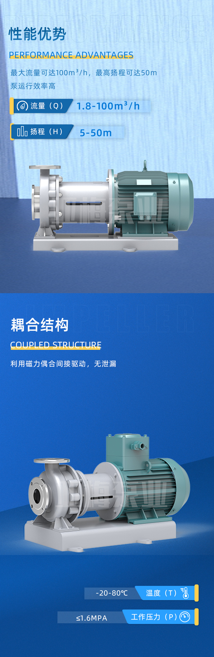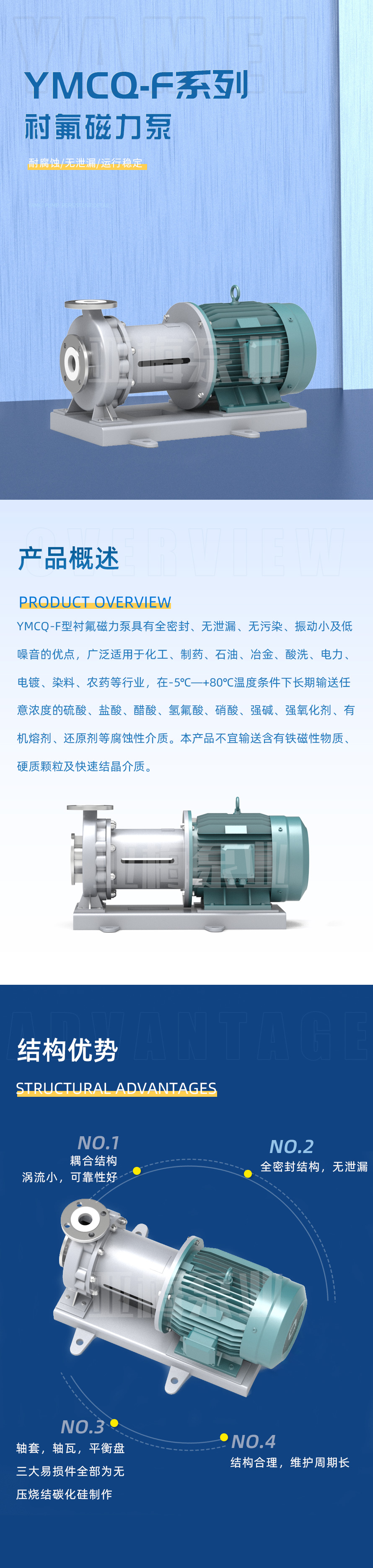 防漏設(shè)計(jì)取消了軸封,利用磁力偶合間接驅(qū)動(dòng),完全消除了滴漏的煩惱,絕不污染使用場(chǎng)地。 由于泵的過(guò)流部分選用“氟塑料合金”制造。可連續(xù)輸送任意濃度的酸、堿、強(qiáng)氧化劑等腐蝕介質(zhì)而毫不受損。