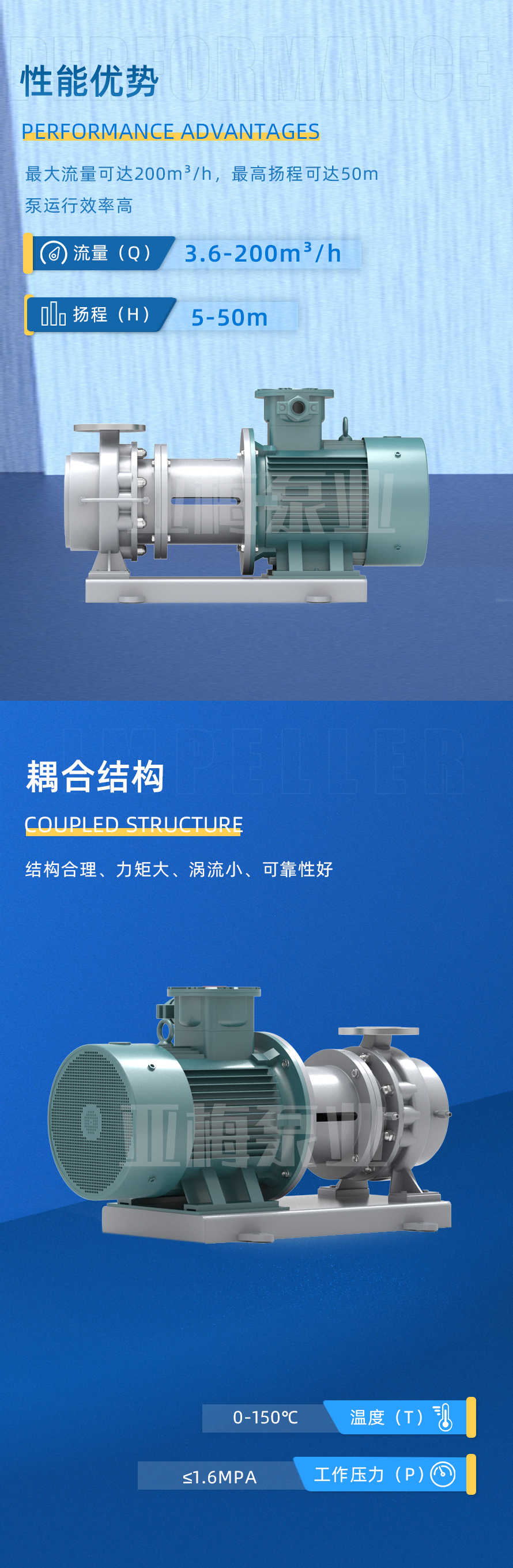 YMCQ-B系列磁力驅(qū)動泵是將永磁聯(lián)軸器的工作原理用于離心泵的高科技產(chǎn)品,設計合理,工藝先進,具有全密封,無泄漏,耐腐蝕等特點。