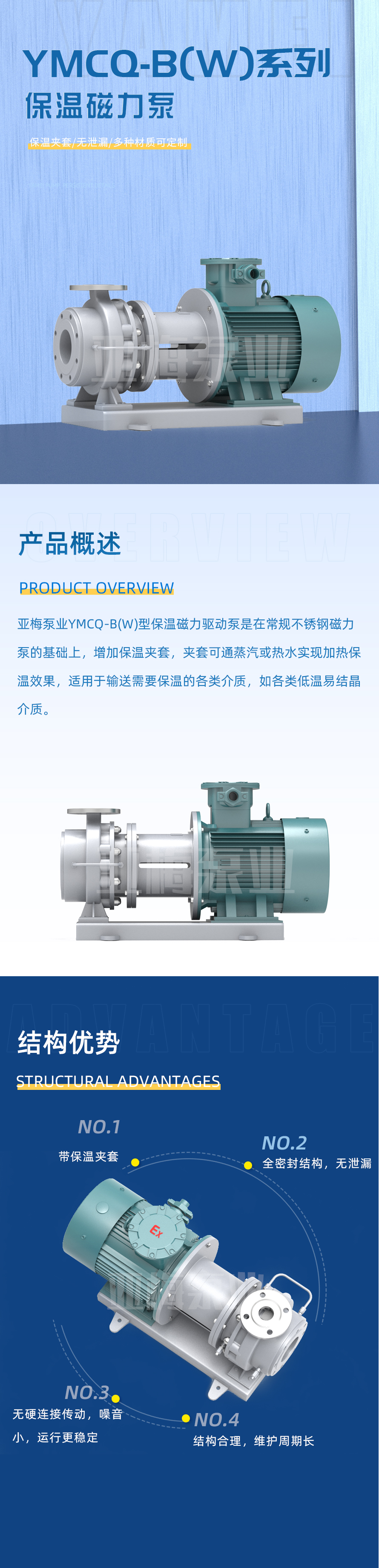亞梅泵業(yè)YMCQ系列磁力驅(qū)動泵是將永磁聯(lián)軸器的工作原理用于離心泵的高科技產(chǎn)品,設計合理,工藝先進,具有全密封,無泄漏,耐腐蝕等特點。